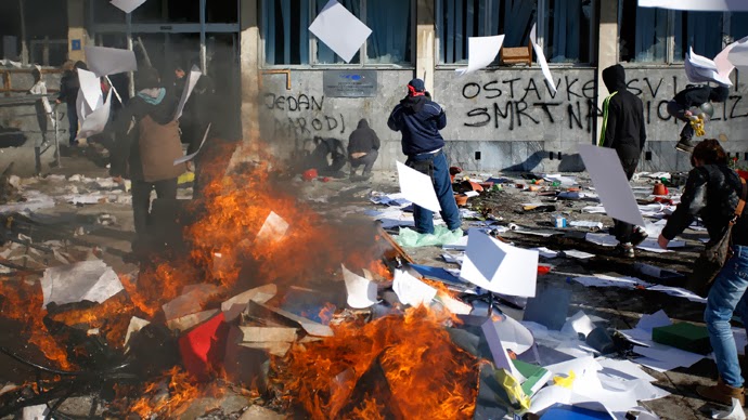 Riots in the cities of Sarajevo, Zenica, Tuzla, Bihac and Mostar resulted in Government buildings burning. Protestors chanting "Revolution!" and "Thieves!". The worst outburst of violence since the regional war ended in 1995.
